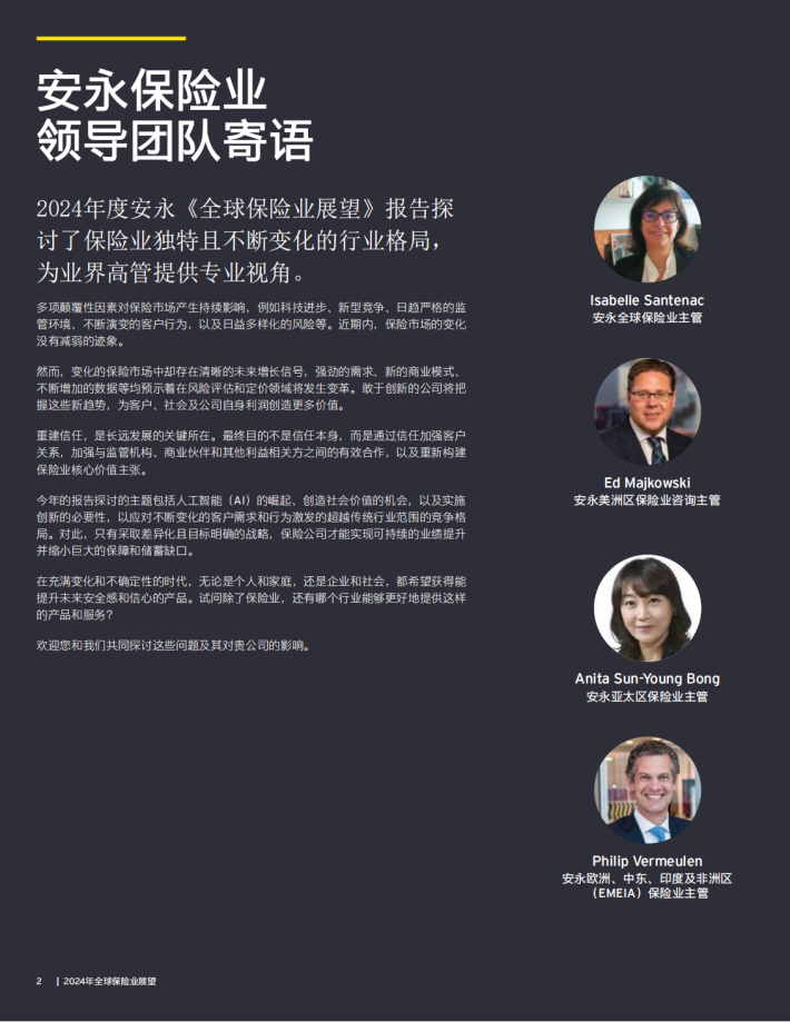 2024年度安永《全球保险业展望》报告探讨了保险业独特且不断变化的行业格局,为业界高管提供专业视角。