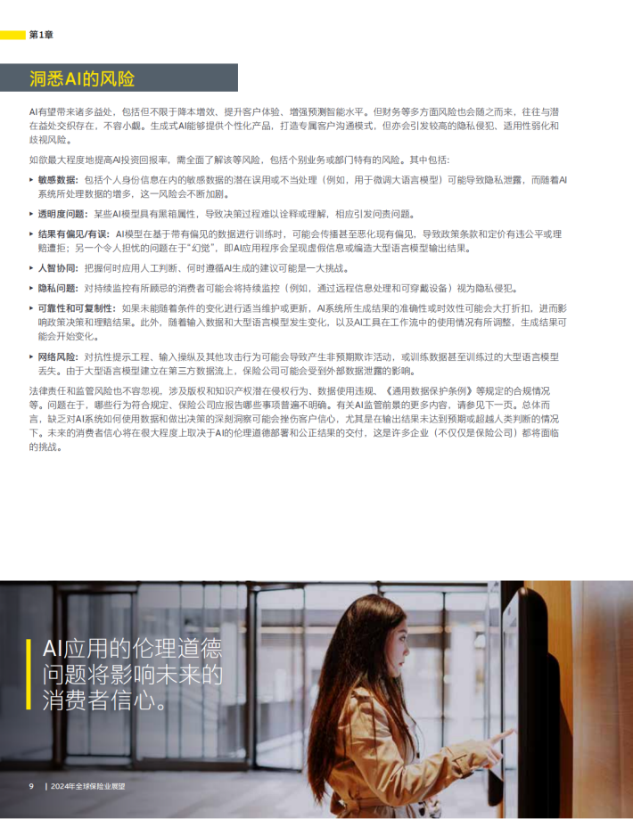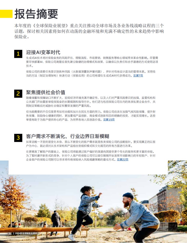 今年的报告探讨的主题包括人工智能(Al)的崛起、创造社会价值的机会,以及实施创新的必要性,以应对不断变化的客户需求和行为激发的超越传统行业范围的竞争格局。对此,只有采取差异化且目标明确的战略,保险公司才能实现可持续的业绩提升并缩小巨大的保障和储蓄缺口。
