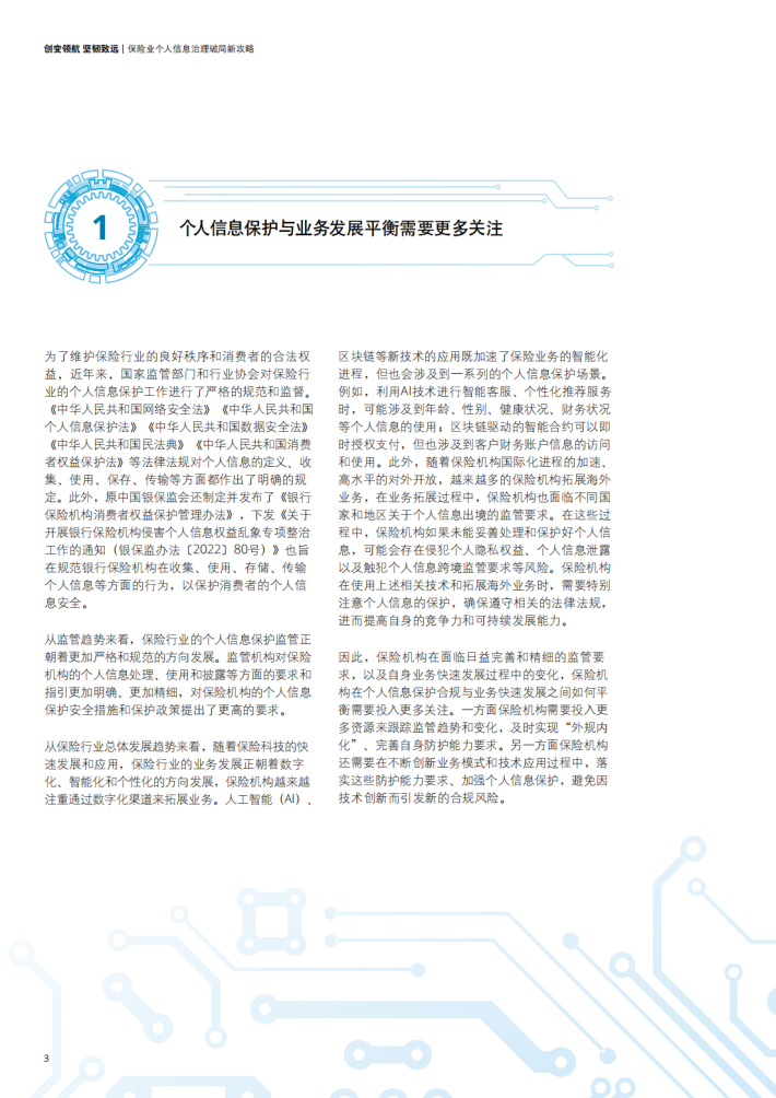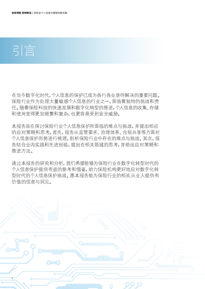 通过本报告的研究和分析,我们希望能够为保险行业在数字化转型时代的个人信息保护提供有益的参考和借鉴,助力保险机构更好地应对数字化转型时代的个人信息保护挑战。愿本报告能为保险行业的相关从业人提供有价值的信息与洞见。