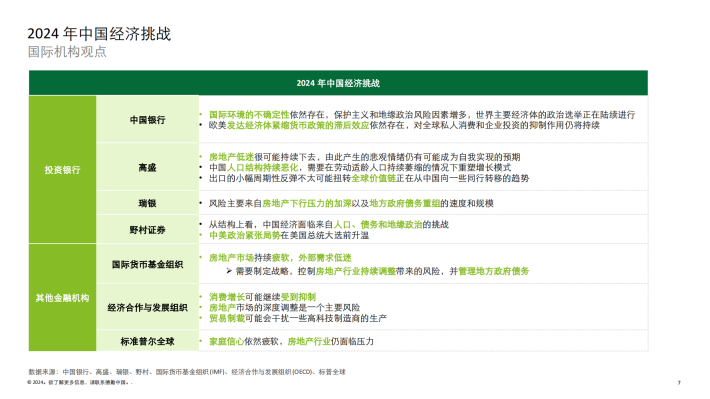 房地产低迷很可能持续下去,由此产生的悲观情绪仍有可能成为自我实现的预期中国人口结构持续恶化,需要在劳动适龄人口持续萎缩的情况下重塑增长模式出口的小幅周期性反弹不太可能扭转全球价值链正在从中国向一些同行转移的趋势