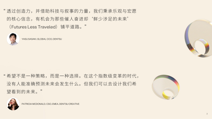 展望未来,我们看到多种可能并存于同一个世界。在未来尚未被书写的此刻,我们之中的每一位,无论来自品牌、企业亦或个人,都能为理想中的未来去设计、去创新、去奋斗。