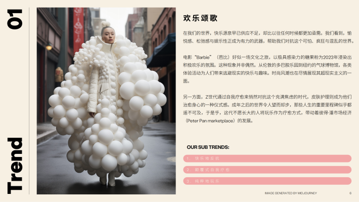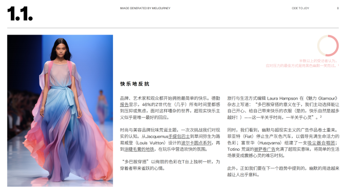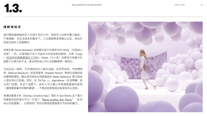 另外,本报告讨论了软实力以及超凡的创造力。现代技术的发展让构画未来前景这件事从未如此简单,那么当擅长世界构建艺术的一代人遇到一系列尖端科技,将会发生什么?事实上,本报告中的所有图像——除了案例部分——都由生成式Al创造。