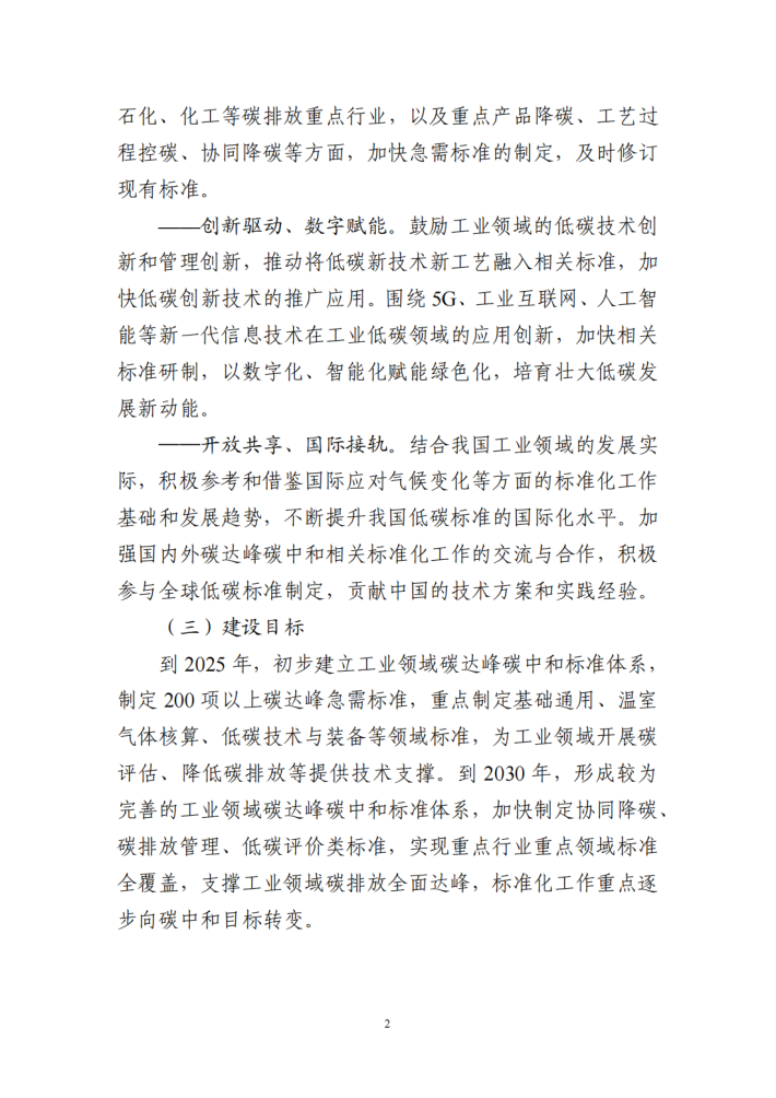 为深入贯彻落实党中央、国务院关于碳达峰碳中和决策部署,充分发挥标准在推进工业领域碳达峰碳中和工作中的引领和规范作用,工业和信息化部组织有关行业协会、科研机构和标准化技术组织编制了《工业领域碳达峰碳中和标准体系建设指南》,提出工业领域碳达峰碳中和标准体系框架,规划了重点标准的研制方向,注重与现有工业节能与综合利用标准体系、绿色制造标准体系的有效衔接。希望通过加快标准制定,持续完善标准体系,推进工业领域向低碳、零碳
