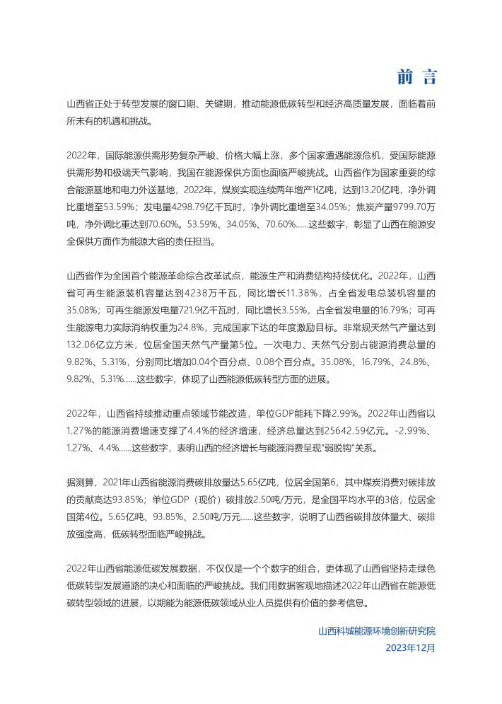 山西省正处于转型发展的窗口期、关键期,推动能源低碳转型和经济高质量发展,面临着前所未有的机遇和挑战。