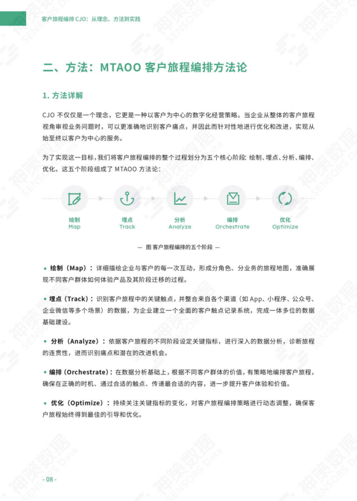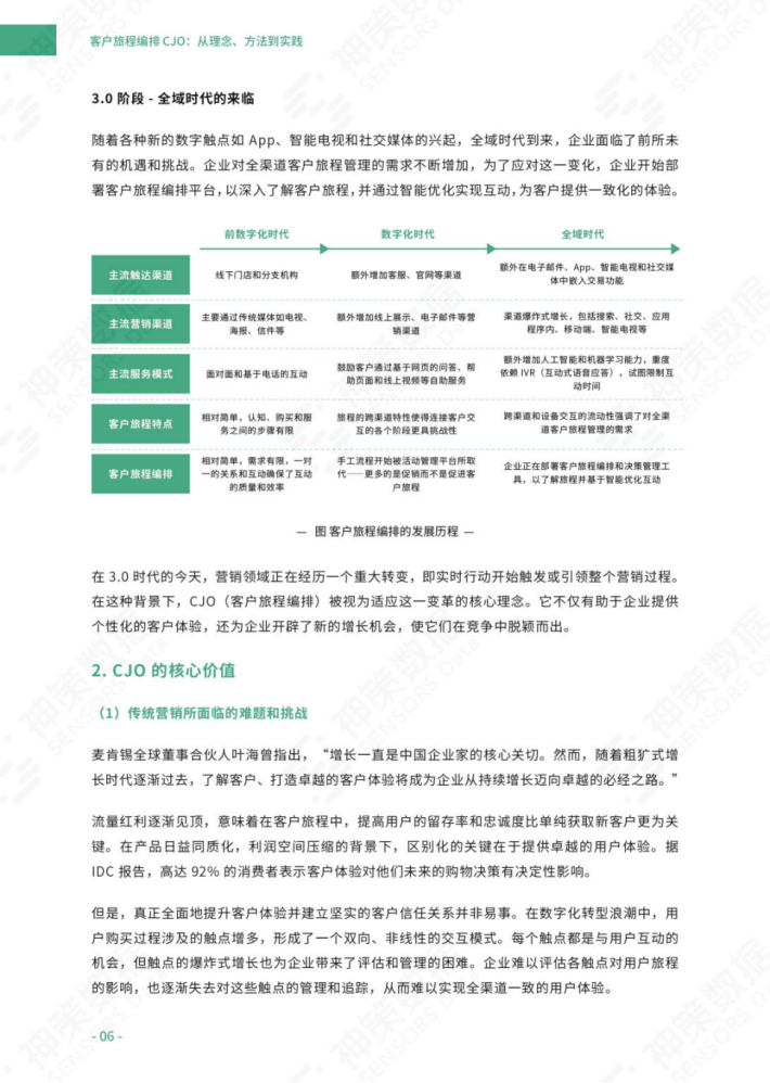 在本白皮书中,神策数据深入探讨了基于CJO的策略和方法。我们提炼出了一个从绘制到优化的全新方法论—MTAO0,并围绕此方法论构建了三大核心引擎:客户数据引擎、客户旅程分析引擎和客户旅程优化引擎。此外,我们还对六大行业的CJO实践进行了深入的分析,旨在帮助各个企业更好地实施CJO策略,从而实现数字化客户经营的目标。