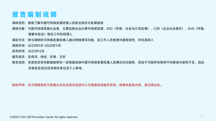 自2014年始,思盟企业社会责任促进中心(简称:思盟)每年开展CSR职业经理人调查,旨在了解中国从事CSR领域工作的经理人工作现状,为个人职业选择、企业人才培养以及行业发展提供信息支持和建议。