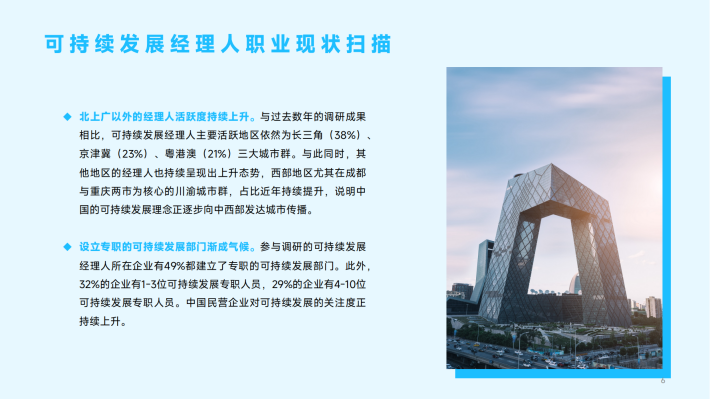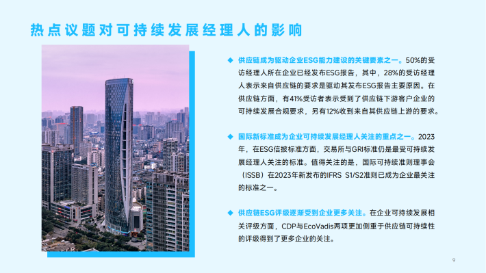 2023年,随着ESG、碳中和等可持续发展议题的进一步兴起,更多企业的CSR经理人拓宽了自身的职能边界,也有更多职场人士从其他领域进入到可持续发展相关工作中。越来越多企业设立了可持续发展部门和CSO首席可持续发展官岗位。