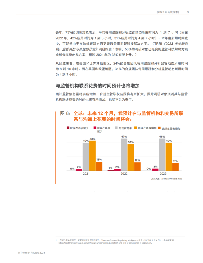 调研对象声称面临管理成本压力、平衡竞争与合规需求方面的挑战,不过45%的调研对象表示并未在整个组织层面监测法规合规成本。