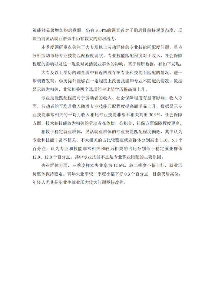 上季度下降0.3小时,近几个季度以来呈现稳中有降的变化趋势。职业方面,新型灵活就业群体工作时间有所下滑,其中在线服务人员、平台接单人员分别