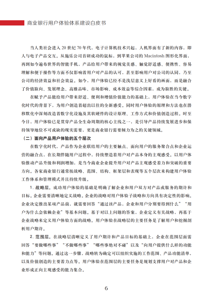 商业银行可以通过体系化地建设和实践用户体验体系,不断为客户提供满意甚至超出预期的金融服务价值,持续加深银行与客户间的了解和情感联系,从而不断创造与客户相契合的品牌感受,在实现对客户的持续吸引的基础上,最终达成客户和银行双赢的目标。