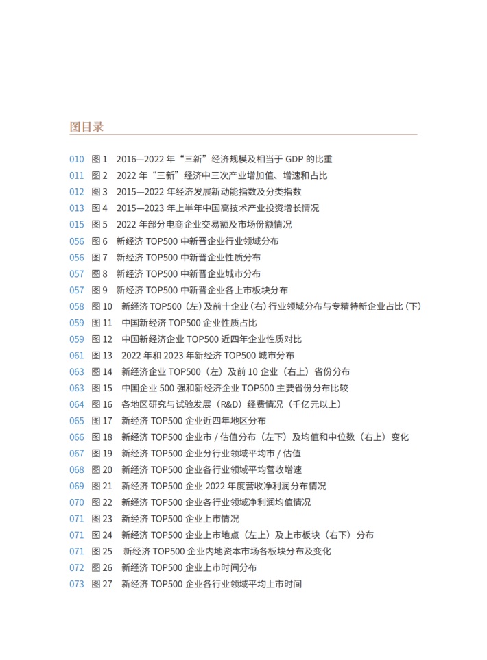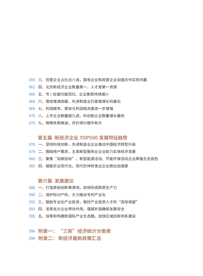 当前外部环境复杂严峻,我国发展战略机遇和风险挑战并存,不确定难预料因素增多。新经济企业以创新激发经济动能,适应市场变化,提升经营,促进消费,推动经济高质量发展;积极开展科技研究探索,厚积薄发,不断在前沿技术领域取得突破;在资本加持下,新经济实现跨越式增长,在国际多领域取得优势地位。同时,国家和地方政府逐渐进入常态化管理阶段,因地制宜,充分激发新经济活力,夯实新经济发展的制度基础和产业基础。2022年我国“三新”经济²增加值为210084亿元,比上年增长6.5%(未扣除价格因素,下同),比同期国内生产总值(GDP)现价增速高1.2个百分点;相当于GDP的比重为17.36%,比上年提高0.11个百分点。2017—2022年,我国“三新”经济占GDP比重分别为15.7%、16.1%、16.3%、17.08%、17.25%、17.36%,平均每年提升0.33个百分点,成为中国经济的重要生力军,在经济体系中比例持续提高。