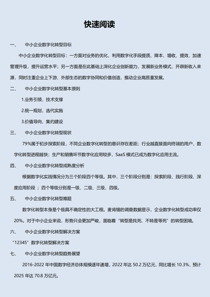 数字化转型本身是个极具不确定性的大工程。麦肯锡的调查数据显示,企业数字化转型成功率仅20%。对于中小企业来说,形势只会更加严峻,面临着“转型是找死、不转是等死”的转型困境。六、 中小企业数字化转型解决方案