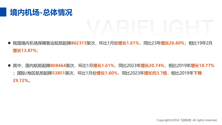 本期飞常准-大数据研究院将从国内机场航班保障、国内航司运营、航线运力等几个方面简述2024年2月国内民航发展情况。