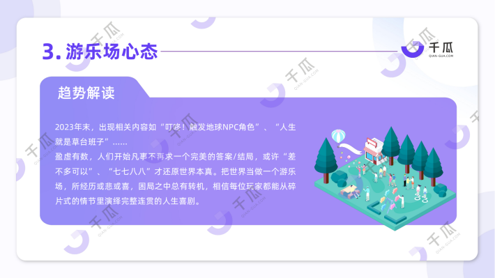 面对这个上升通道逐渐缩紧、充斥着不确定性的时代,个体迫切寻找独属的「玄学“药”方」,以期忠于内心,收获圆融人生。部分年轻人开始选择用「游乐场心态」戏谑真实人生,「人格回归1不断刷新自我认知,NPC也迎来自己的春天。