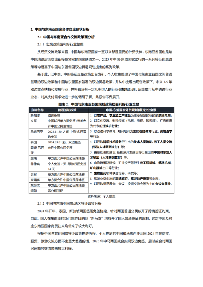 基于此,以中泰、中新签证互免政策出台为引,个人收集整理了中国与东南亚各国之间普通签证的双边政策和中国与东盟国家签署的双边贸易政策,并从中梳理出规划政策下,未来3-5年双边重点扶持和发展行业,并将易派有一定几率切入的行业做加粗处理。后续或可从中遴选行业业态,对其支付需求做进一步的调研了解,此报告不做展开。