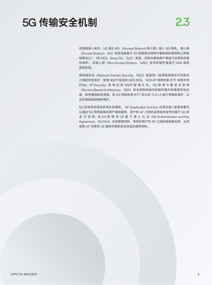 随着新终端、新连接技术的发展,数据传输不仅仅局限于传统高层协议,数据安全保护的能力也需要从传统的高层保护向底层保护迁移,从而匹配6G新终端、新空口技术的安全需求。