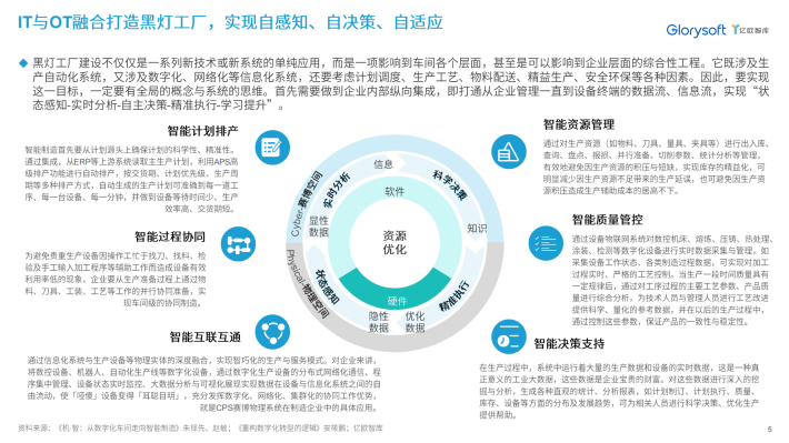 黑灯工厂建设不仅仅是一系列新技术或新系统的单纯应用,而是一项影响到车间各个层面,甚至是可以影响到企业层面的综合性工程。它既涉及生产自动化系统,又涉及数字化、网络化等信息化系统,还要考虑计划调度、生产工艺、物料配送、精益生产、安全环保等各种因素。因此,要实现这一目标,一定要有全局的概念与系统的思维。首先需要做到企业内部纵向集成,即打通从企业管理一直到设备终端的数据流、信息流,实现“状态感知-实时分析-自主决策-精准执行-学习提升”。