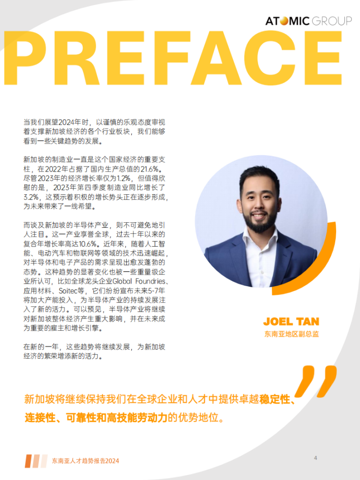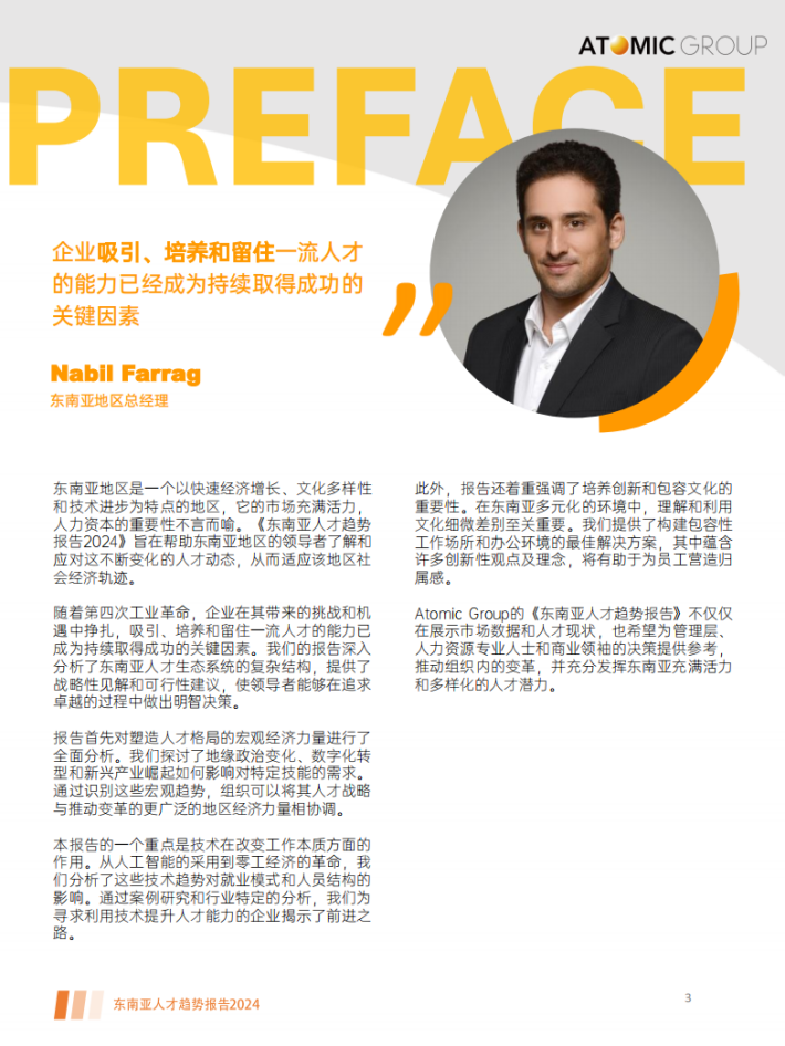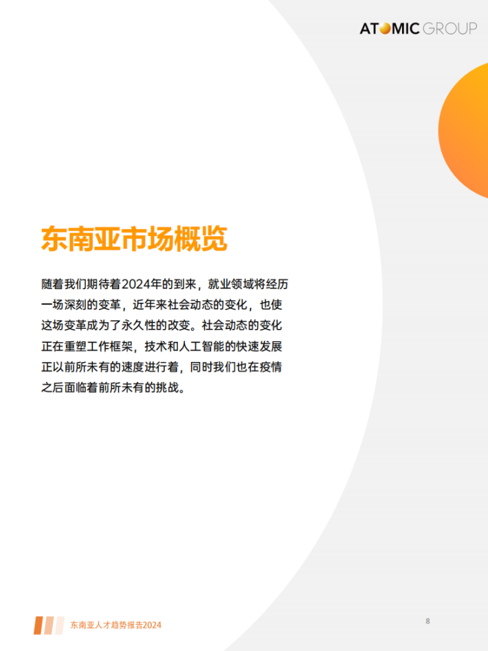 东南亚地区是一个以快速经济增长、文化多样性和技术进步为特点的地区,它的市场充满活力,人力资本的重要性不言而喻。《东南亚人才趋势报告2024》旨在帮助东南亚地区的领导者了解和应对这不断变化的人才动态,从而适应该地区社会经济轨迹。