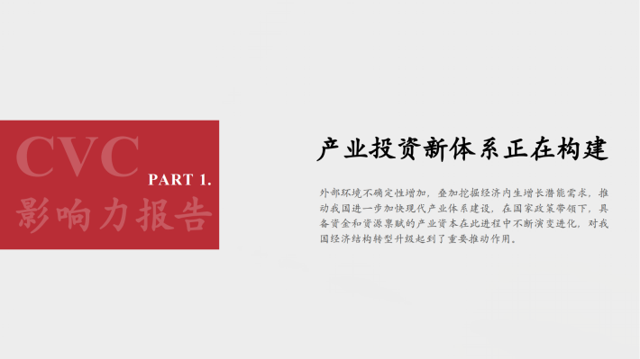 在此背景下,产业资本对经济发展、技术创新、引领行业发展、创造企业价值的影响变得尤为重要。产业与金融的融合已经加速,政策越来越倾向于CVC投资,因为它们相比传统的PEVC机构具有独特的优势,比如资金更自主灵活,且更接近产业资产。