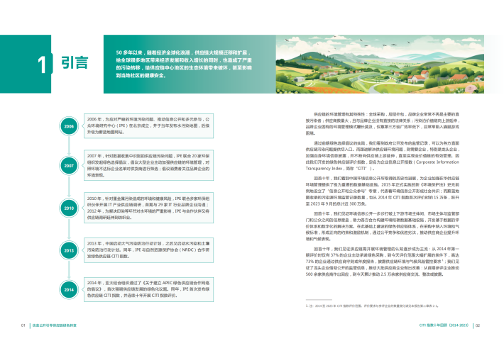 通过前期绿色选择倡议的实践,我们看到政府公开发布的监管记录,可以为各方直面供应链污染问题提供切入口。而跟进解决供应链环境问题,则需要企业,特别是龙头企业,加强自身环境信息披露,并不断向供应链上游延伸,直至实现全价值链的有效管理。因此我们开发的绿色供应链评价指数,定名为企业信息公开指数(Corporate InformationTransparency Index,简称“CITI”)。
