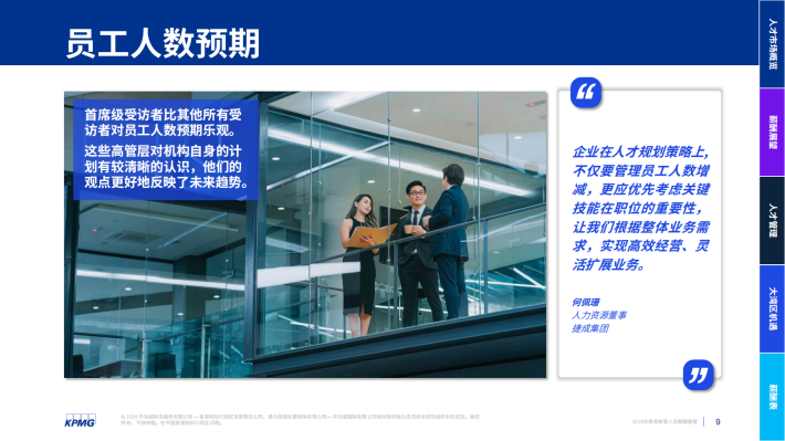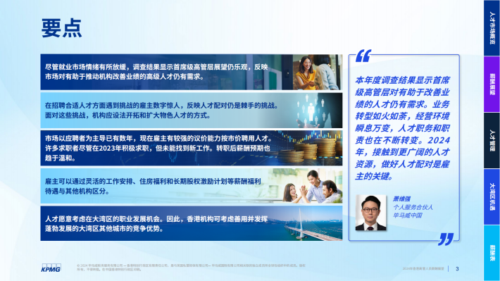尽管就业市场情绪有所放缓,调查结果显示首席级高管层展望仍乐观,反映市场对有助于推动机构改善业绩的高级人才仍有需求。