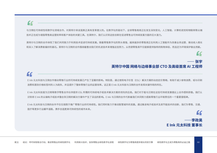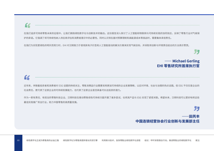总结来看,科技赋能零售业的全过程,可以是更加友好的、责任的、绿色的、包容的、永续的。传统零售商现在可以利用数字化技术实现业务增长和可持续发展,实现色数字化,让数字化与绿色化实现两翼齐飞。
