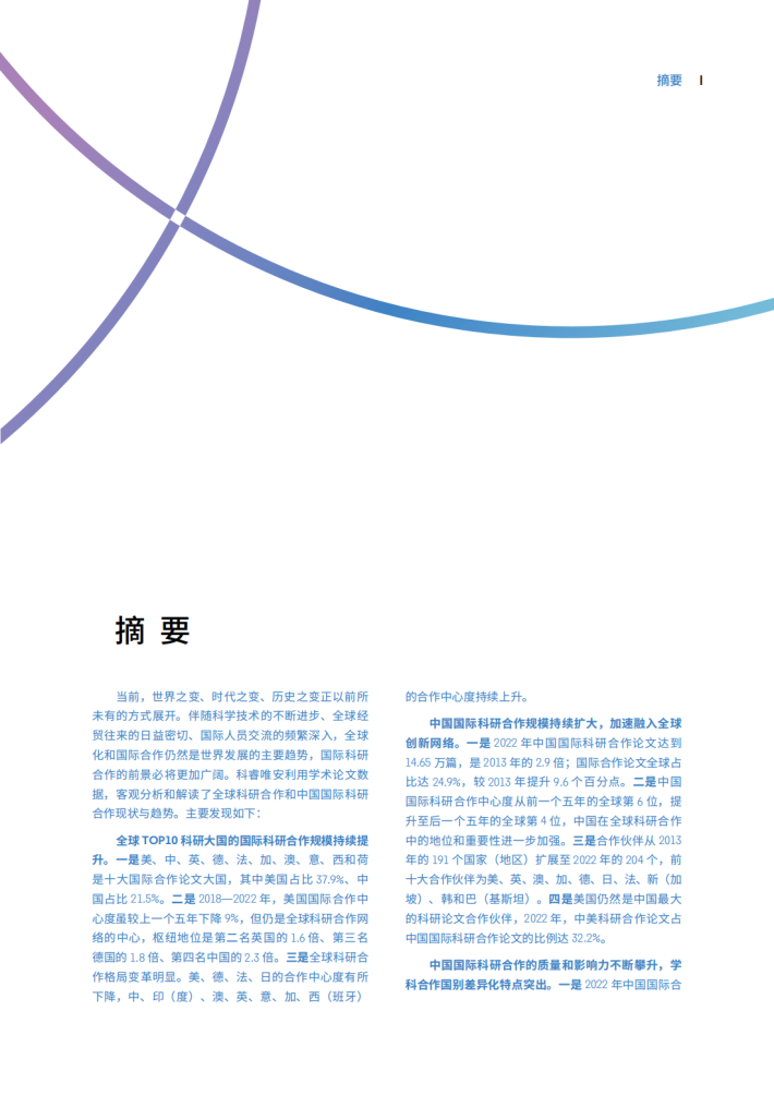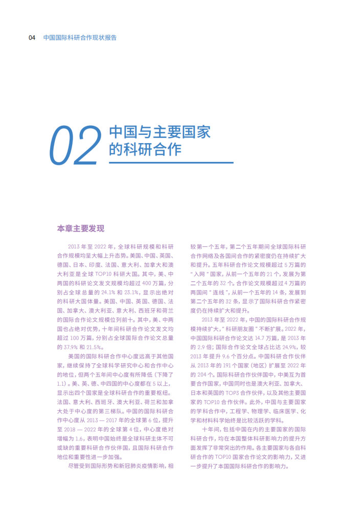 德国的1.8倍、第四名中国的2.3倍。三是全球科研合作格局变革明显。美、德、法、日的合作中心度有所下降,中、印(度)、澳、英、意、加、西(班牙)的合作中心度持续上升。