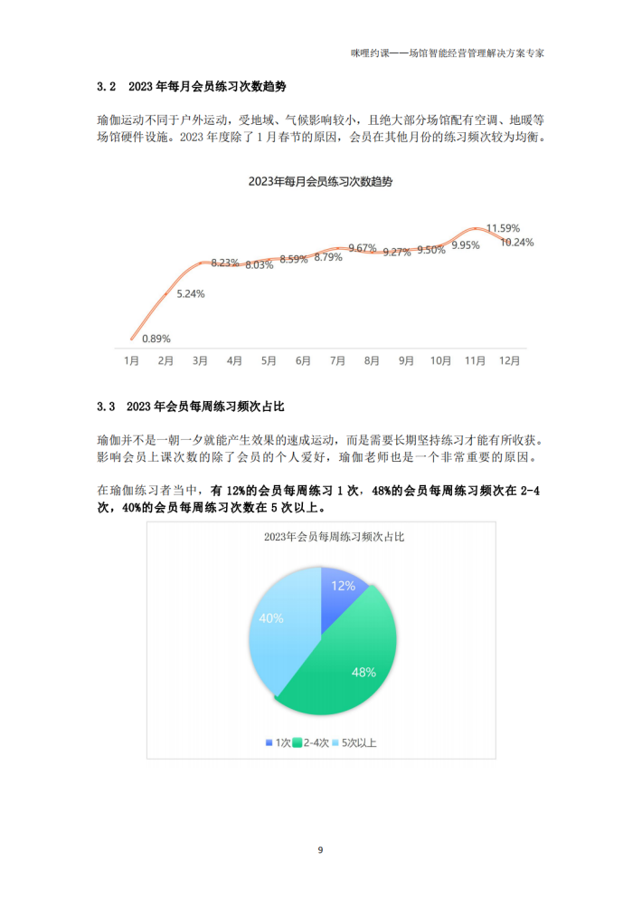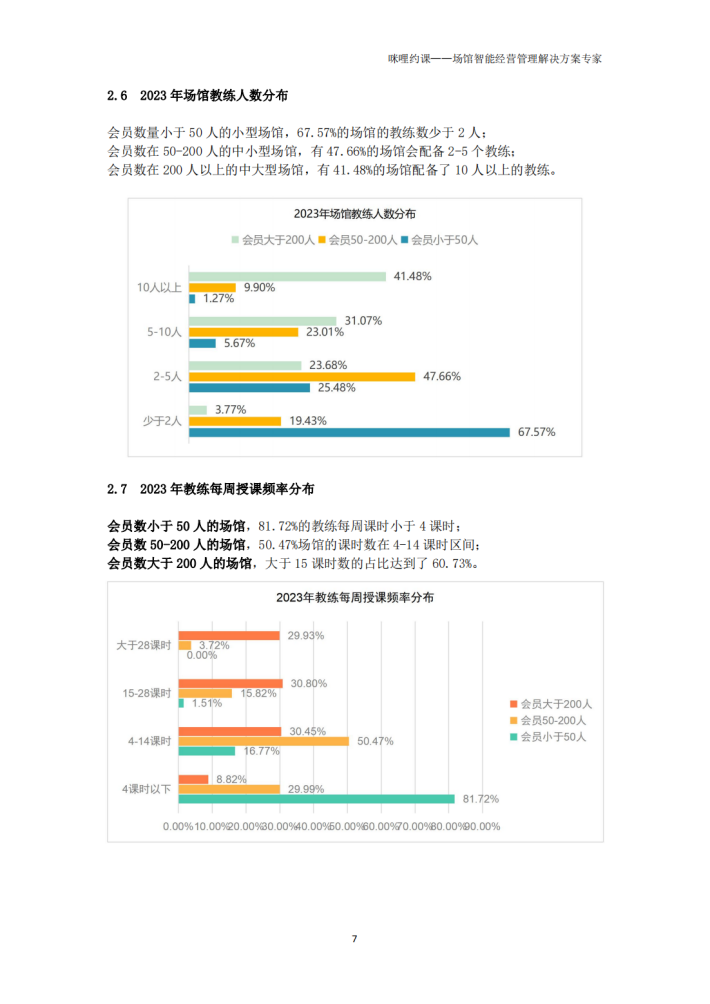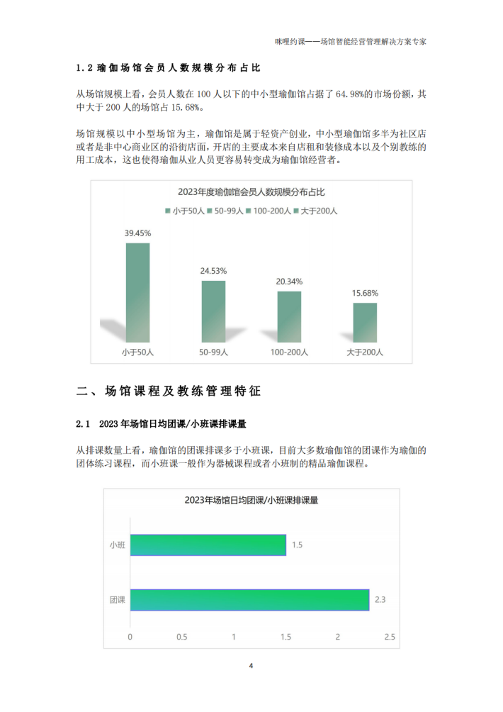 从场馆规模上看,会员人数在100人以下的中小型瑜伽馆占据了64.98%的市场份额,其中大于200人的场馆占15.68%。