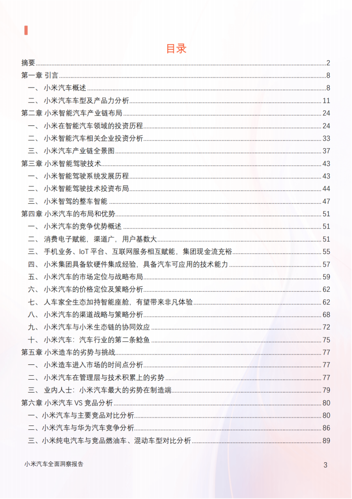 本文主要介绍了小米汽车在市场中的布局和优势,以及其面临的劣势与挑战。小米汽车凭借品牌、技术和成本三大核心优势,展现出强大的市场竞争力和品牌影响力,为消费者带来全新的汽车生活体验。文章还分析了小米汽车与小米生态链的协同效应,通过资源共享和互补,显著提升了生产效率和产品质量,扩大了销售规模,并增强了品牌影响力。然而,小米造车在市场上面临多方面的挑战,包括市场饱和度、消费者认知度以及政策与法规限制等。文章探讨了小米汽车在管理层与技术积累上的劣势,以及市场竞争与技术挑战对其发展的影响。尽管面临诸多困难,但小米汽车仍在不断探索和创新,以期在竞争激烈的汽车市场中脱颖而出。文章强调,小米汽车需要充分发挥其核心优势,积极应对市场挑战,加大研发投入,提升技术实力,并塑造良好的品牌形象,以赢得消费者的信任和支持。未来,随着汽车市场的不断变化和消费者需求的升级,小米汽车有望凭借其独特的竞争优势和市场布局,实现更加辉煌的发展。总之,本文全面剖析了小米汽车的布局和优势以及劣势与挑战,为读者呈现了一个真实而立体的小米汽车形象。在激烈的市场竞争中,小米汽车将不断前行,为消费者带来更加优质的汽车产品和服务。