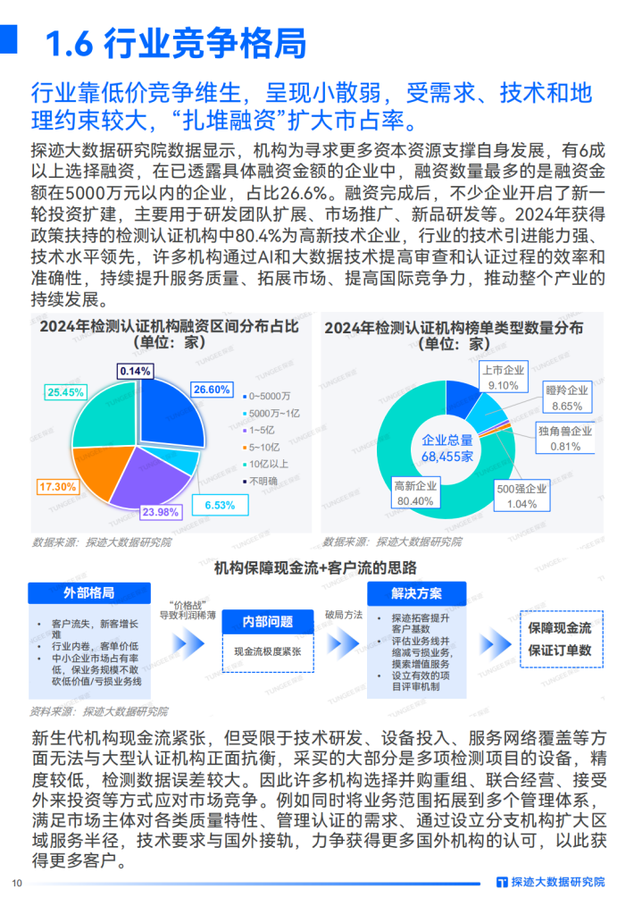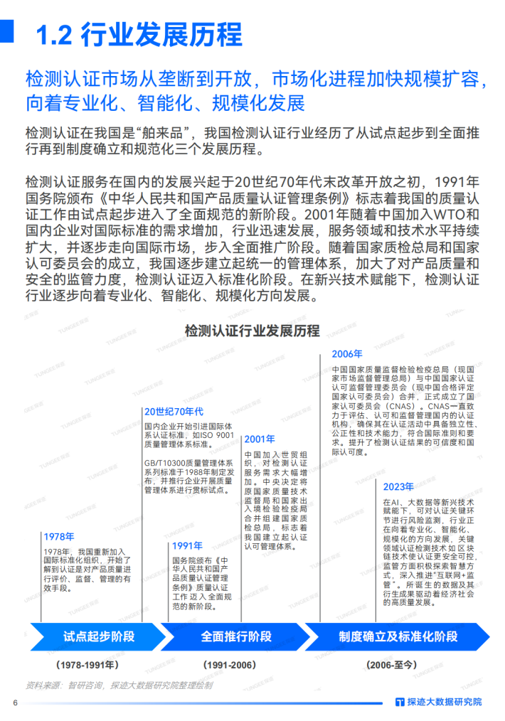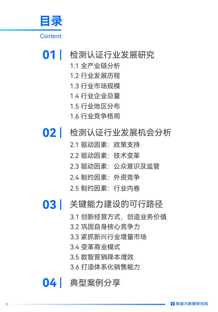 随着物质消费水平升级、政策强化市场监管,检测认证在助推中国迈向“质量强国、制造强国”中的作用日益突出,行业迎来扩容,融资并购潮兴起,人工智能、大数据在行业中应用渐广,预示着技术革新将重塑行业格局。龙头企业通过创新和战略调整实现增长,业务结构多样,抗风险能力强,新一代制造领域的实践带来新兴蓝海。检测认证下游子行业众多,各个赛道增长潜力不同,加速行业弹性复苏,场内场外的众多玩家如何借助数字化力量实现降本增效,抢抓增长机遇?