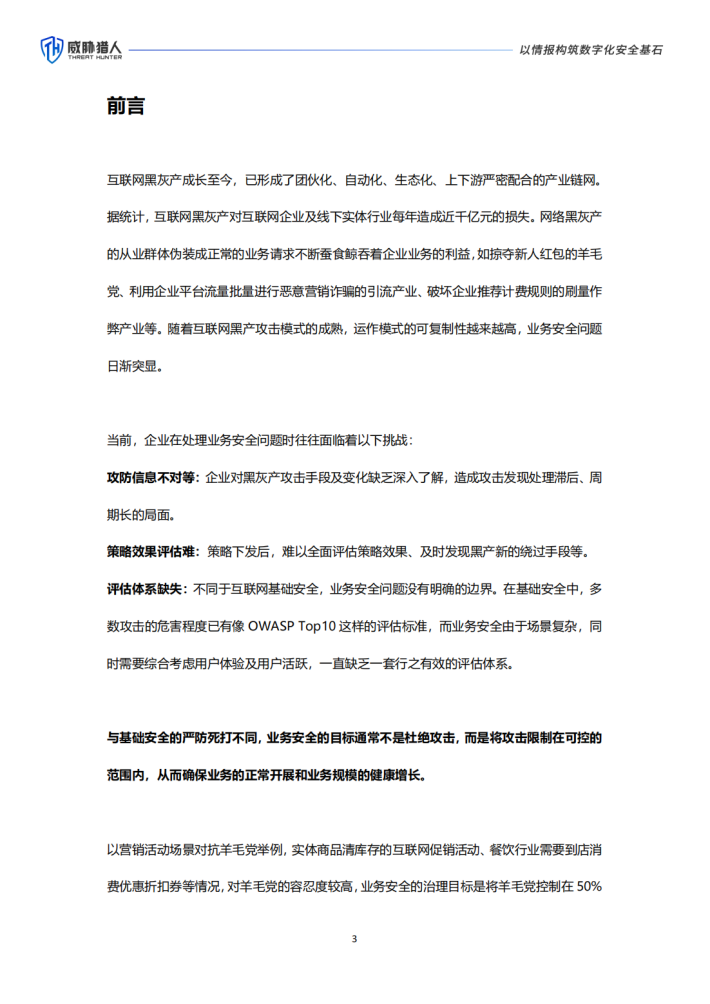 互联网黑灰产成长至今,已形成了团伙化、自动化、生态化、上下游严密配合的产业链网。据统计,互联网黑灰产对互联网企业及线下实体行业每年造成近千亿元的损失。网络黑灰产的从业群体伪装成正常的业务请求不断蚕食鲸吞着企业业务的利益,如掠夺新人红包的羊毛党、利用企业平台流量批量进行恶意营销诈骗的引流产业、破坏企业推荐计费规则的刷量作弊产业等。随着互联网黑产攻击模式的成熟,运作模式的可复制性越来越高,业务安全问题日渐突显。