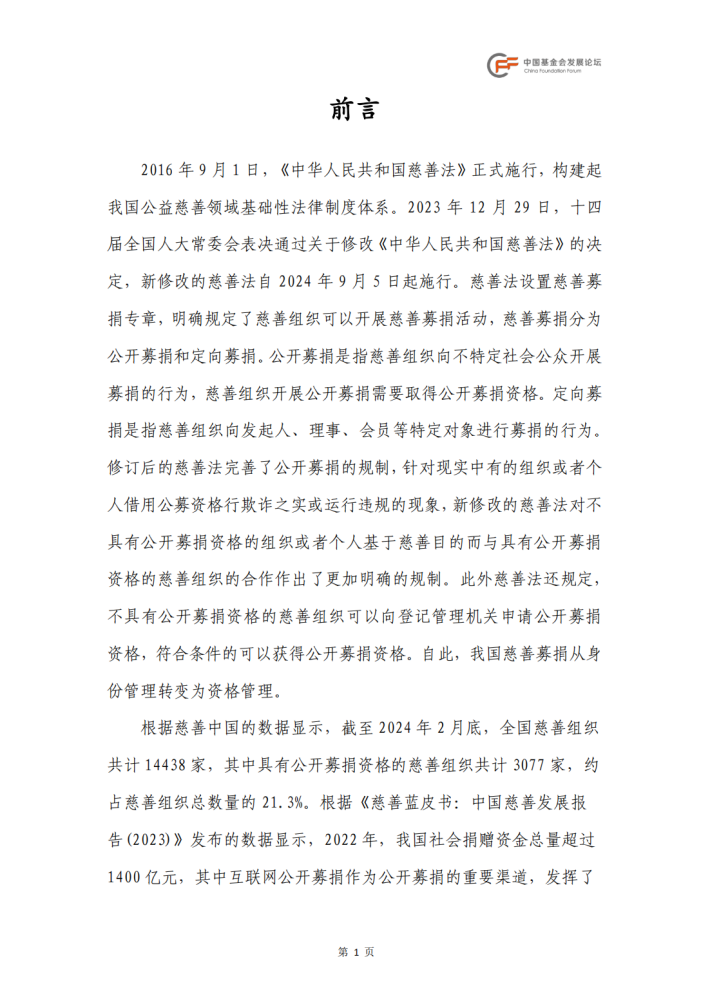 根据慈善中国的数据显示,截至2024年2月底,全国慈善组织共计14438家,其中具有公开募捐资格的慈善组织共计3077家,约占慈善组织总数量的21.3%。根据《慈善蓝皮书:中国慈善发展报告(2023)》发布的数据显示,2022年,我国社会捐赠资金总量超过1400亿元,其中互联网公开募捐作为公开募捐的重要渠道,发挥了巨大作用。人民政协网2023年5月24日刊登的《8年来累计超510亿人次参与互联网慈善,募款超350亿元,2023年中国互联网公益峰会显示——我国互联网公益慈善成就举世瞩目》一文显示,2016年慈善法颁布实施当年,我国互联网公益筹集资金规模仅20亿元,到2021年已经跃升至近百亿元;自2016年至2023年的8年间,通过互联网公募平台累计筹得善款超350亿元、带动网民参与超510亿人次。