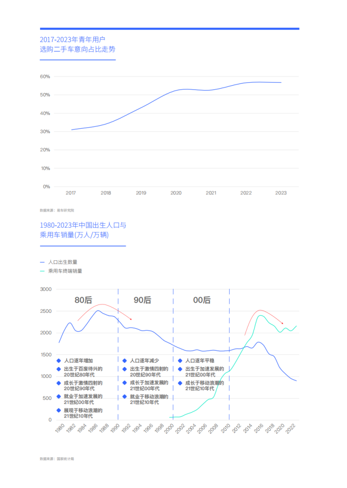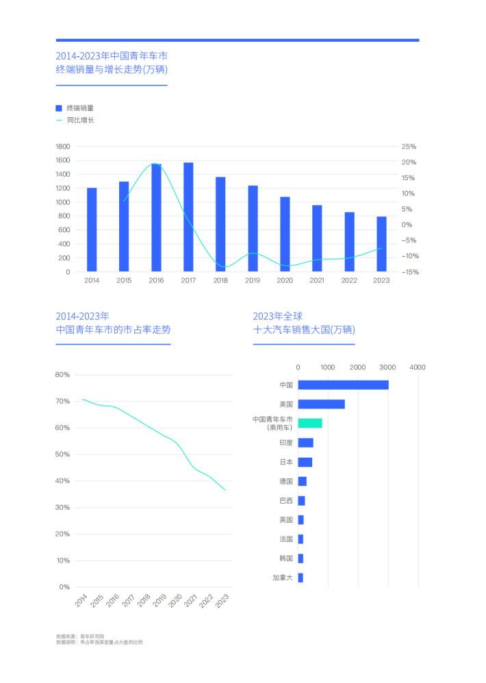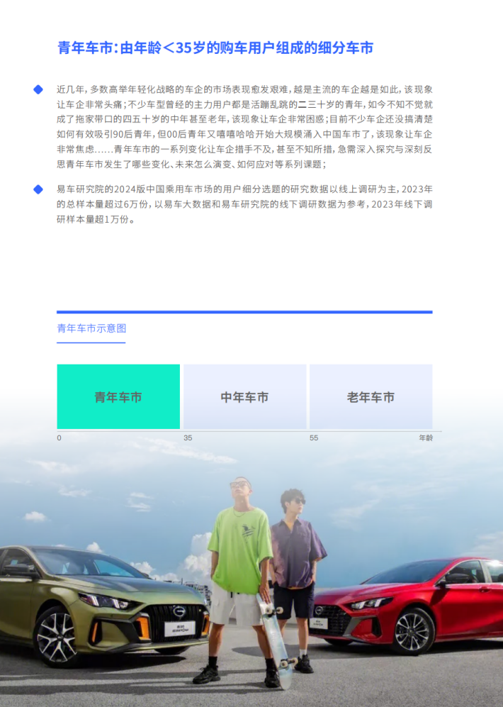 易车研究院的2024版中国乘用车市场的用户细分选题的研究数据以线上调研为主,2023年的总样本量超过6万份,以易车大数据和易车研究院的线下调研数据为参考,2023年线下调研样本量超1万份。