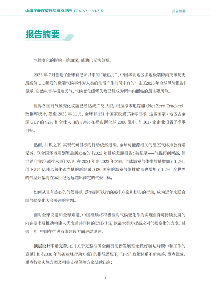 世界各国对气候变化议题已经达成广泛共识。根据净零追踪器(Net-Zero Tracker)数据库统计,截至2023年11月,全球有151个国家设置了净零目标,这些国家/地区占全球GDP的92%和全球人口的89%;在福布斯全球2000强中,有1017家企业设置了净零目标。
