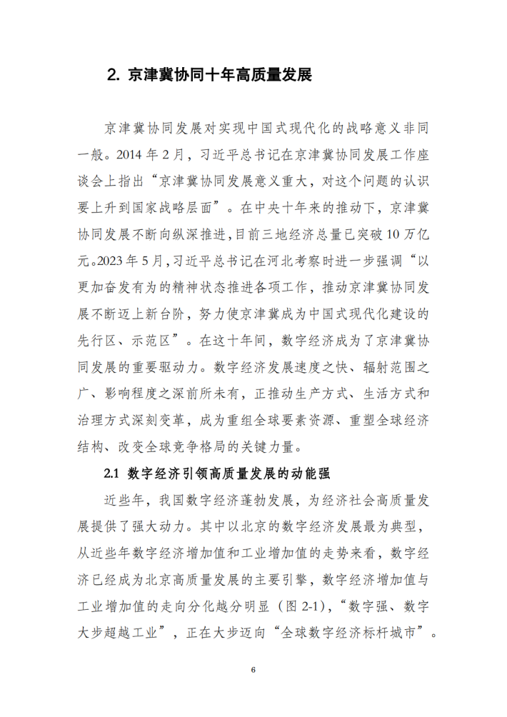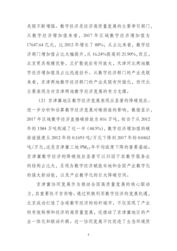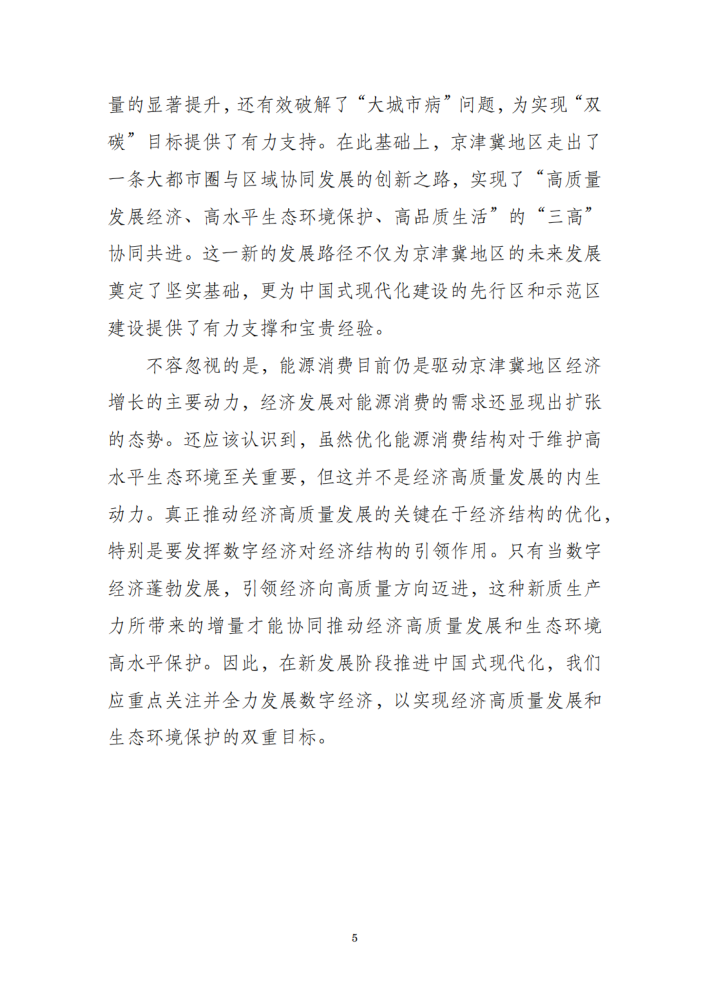 在京津冀及周边地区大气污染防治协作机制、大力推动绿色能源和优化能源消费结构的同时,数字经济牵引经济结构优化,赋能产业数字化,也是助力区域生态环境质量改善、推动实现“双碳”目标的重要因素,正是因为数字经济蓬勃发展,推动了经济社会发展全面绿色转型,促进了经济高质量发展和生态环境高水平保护的协同共进。